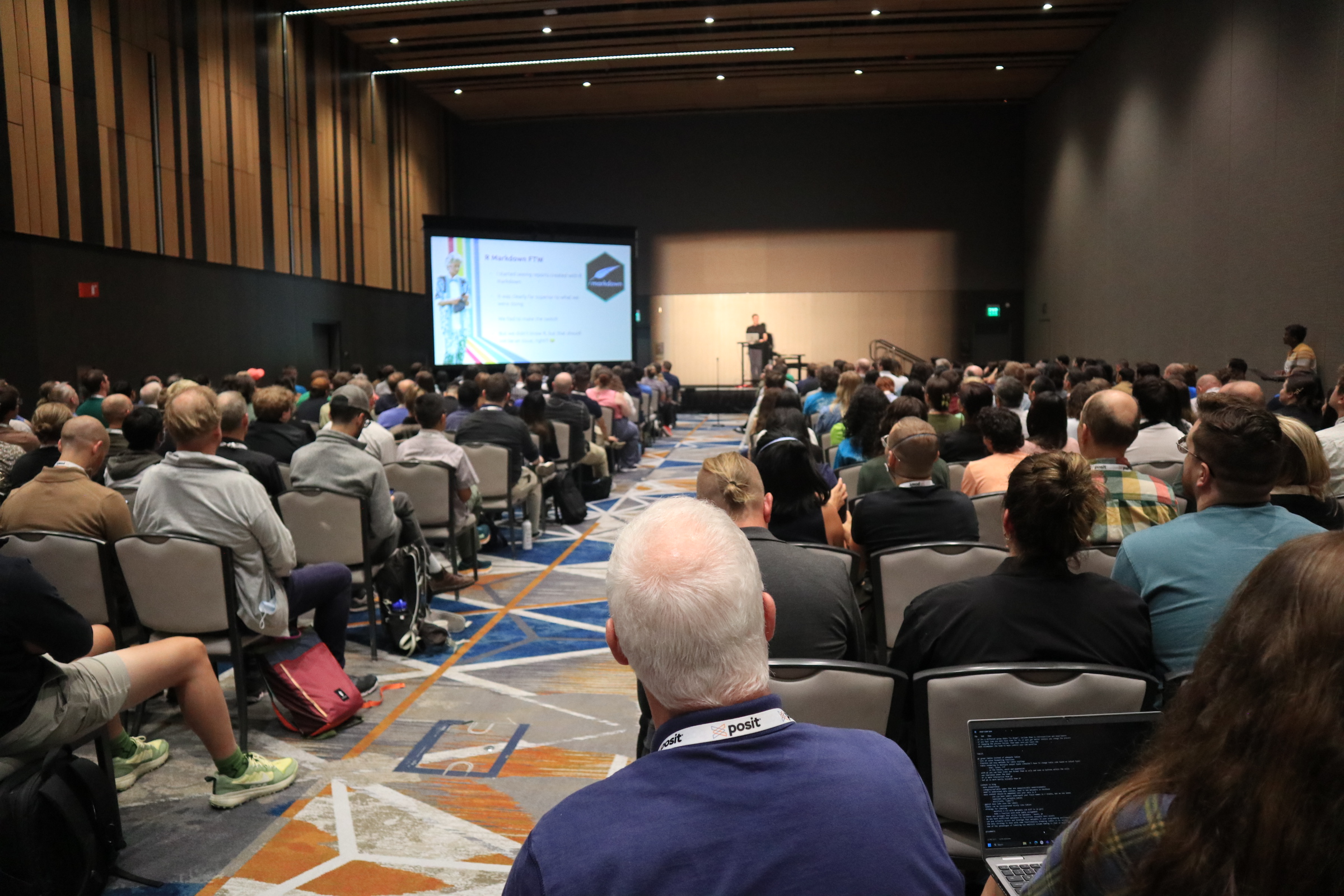 來到會場之後,整個驚為天人。POSIT 直接包下整個西雅圖市中心的飯店,從三到七樓都是會議場地,而同個飯店就是與會者的住宿地點。從前身叫做 RStudio 就可以推測,大部分的 workshop 與 session 都以 R 為主,連註冊的小本本都是一整冊的 cheatsheets! 直接深深的切中我心。同時也有很多 Python 的 talk。