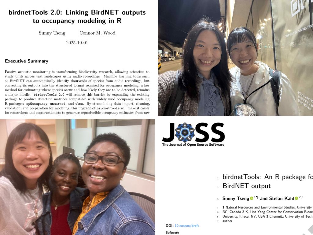 會這麼開心是因為,能夠獨立寫 research grant proposal 而且成功拿到 funding,是研究人員成長的很重要的階段,現在又是北美 resaerch funding 競爭激烈的時期,而且這次是邀到我一直很崇拜的、在康乃爾鳥類研究室的研究學者 Connor 一起,我們在年中就一直信件往返討論可以怎麼繼續開發 birdnetTools R package,我就提議,乾脆來一起寫個 proposal 申請經費吧!