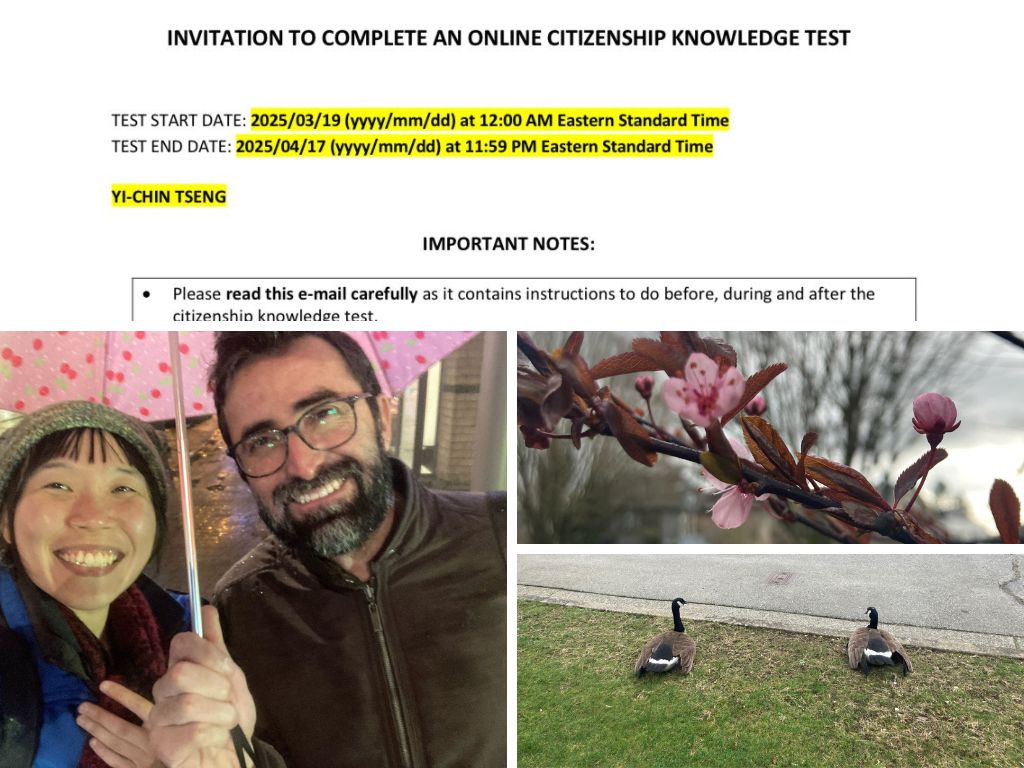 周末像是有默契地跟 Gintas 各自度過。我在上周三收到了公民考試的通知,比預期的還要早收到阿;Gintas 則是終於完成了英文考試,在周末送出了 BC PNP 與聯邦的申請。